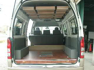 かなりトランポに近付けています。もともと家族でバイクのレースに出場するくらいにバイク好きファミリーですので、家族5人が乗れて、bigバイクも最低2台は積める事が条件でした。また、常設の格納式スロープがとても便利との事です。